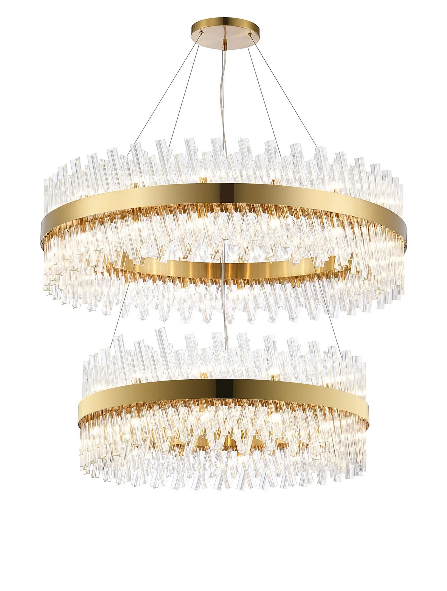 Melville 2 Tier 80cm + 1m Pendant, 24 + 32 Light G9, Brass/Clear