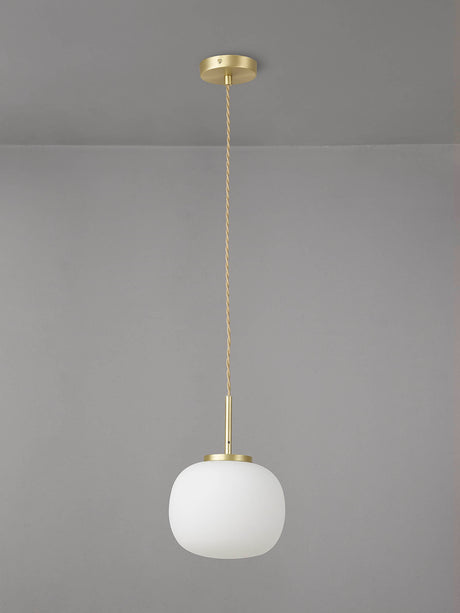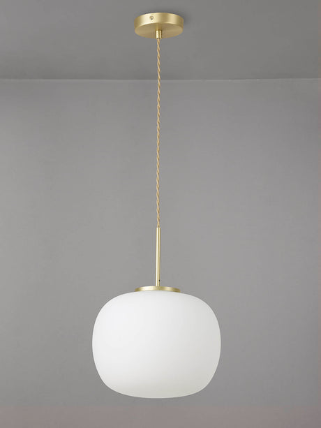 £106.67 + VAT (£128.00)Unit price /UnavailableIn stock (42 units)Cunnington Small Oval Ball Pendant 1 Light E27 Satin Gold Suspension With Frosted White Glass Globe