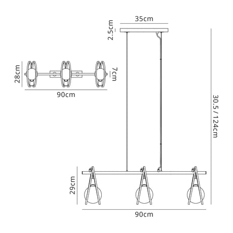 £62.50 + VAT (£75.00)Unit price /UnavailableIn stock (82 units)Munro Linear Pendant, 3 x E27, Matt Black/Frosted Glass