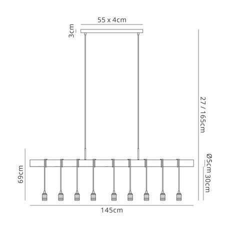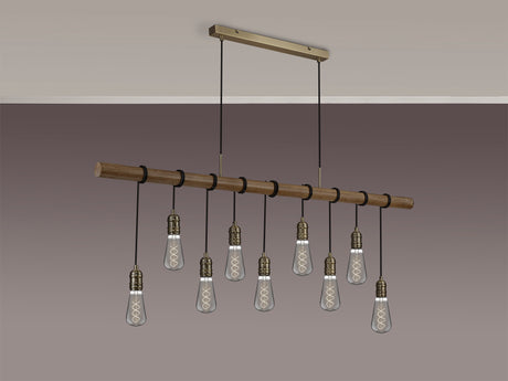 £158.33 + VAT (£190.00)Unit price /UnavailableLow stock (15 units)Tiler Pendant, 9 x E27, Medium Oak/Antique Brass