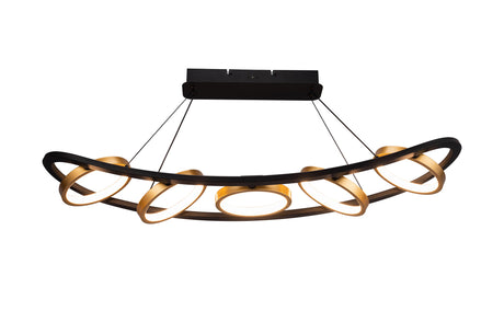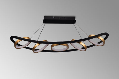 Bertshin Round Pendant, 5 Ring, 36W LED, 3200K, 2200lm, Satin Black / Gold, 3yrs Warranty