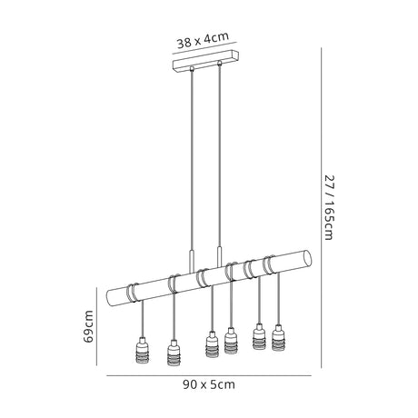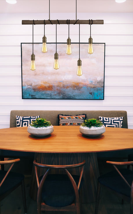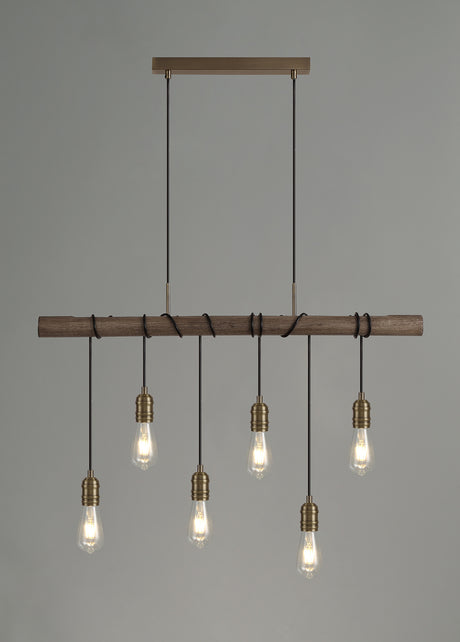 Tiler Pendant, 6 x E27, Medium Oak/Antique Brass
