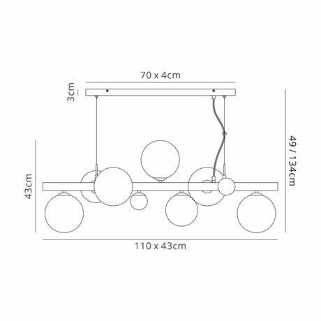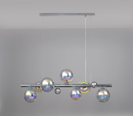 Suggett Linear Pendant, 7 x G9, Polished Chrome/Iridescent Glass