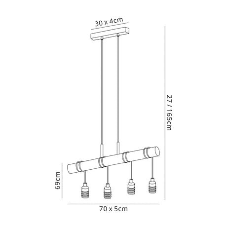 Tiler Pendant, 4 x E27, Medium Oak/Antique Brass