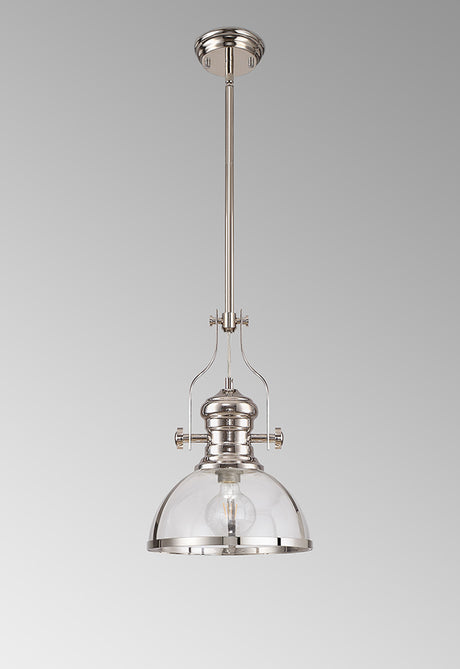 £141.67 + VAT (£170.00)Unit price /UnavailableIn stock (25 units)Munro Pendant, 1 x E27, Polished Nickel With Round 30cm Polished Nickel / Clear Glass Shade