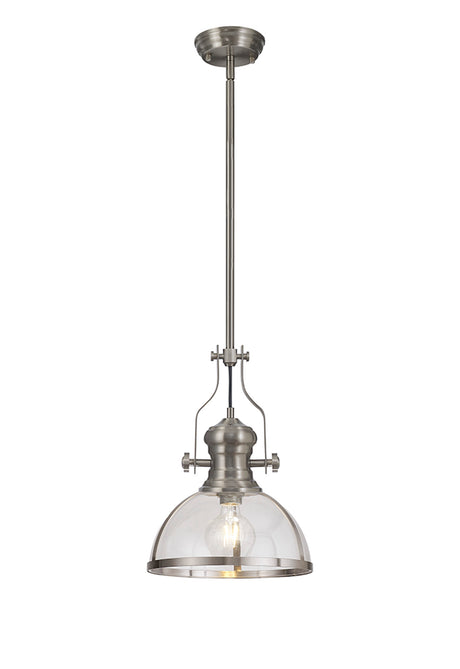 £316.67 + VAT (£380.00)Unit price /UnavailableLow stock (20 units)Munro Pendant, 1 x E27, Satin Nickel With Round 30cm Satin Nickel / Clear Glass Shade
