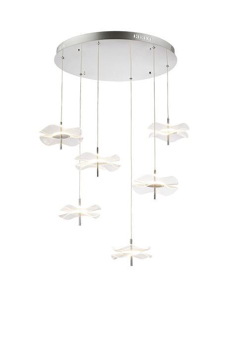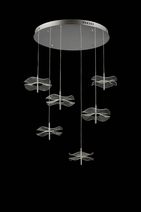 Corner Round Pendant, 6 x 6W LED, 4000K, 2800lm, Polished Chrome, 3yrs Warranty