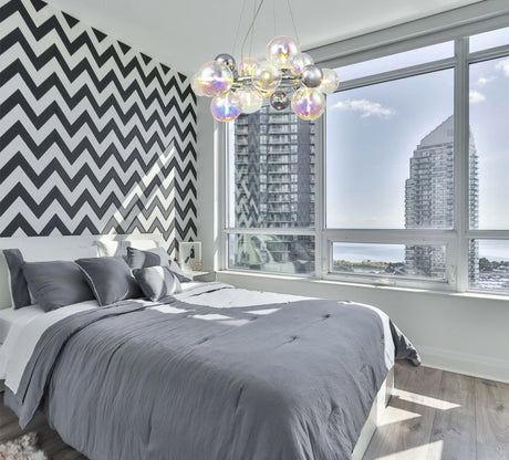 £266.67 + VAT (£320.00)Unit price /UnavailableIn stock (35 units)Suggett Circular Pendant, 12 x G9, Polished Chrome, Iridescent Glass