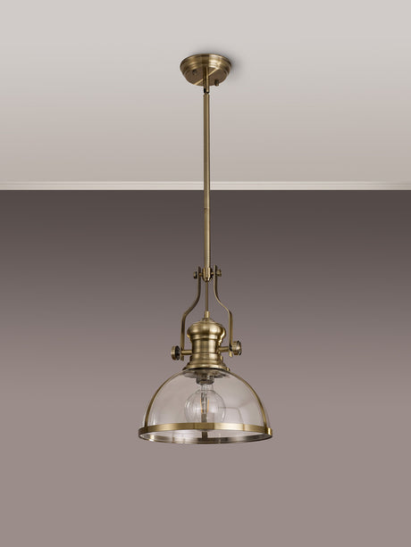 £333.33 + VAT (£400.00)Unit price /UnavailableVery low stock (7 units)Munro Pendant, 1 x E27, Antique Brass With Round 30cm Antique Brass / Clear Glass Shade