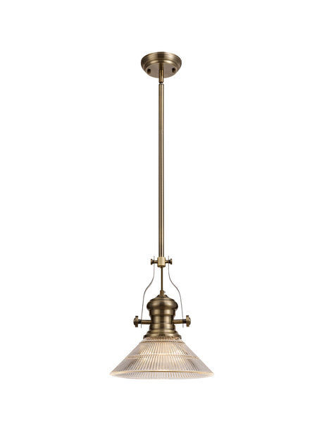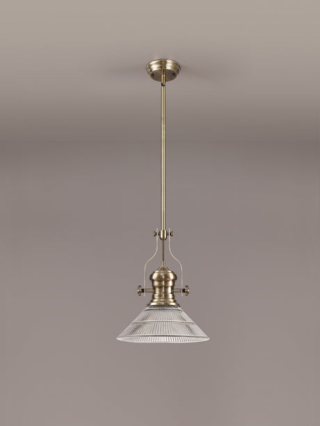 £335.83 + VAT (£403.00)Unit price /UnavailableVery low stock (2 units)Munro 1 Light Pendant E27 With 30cm Cone Glass Shade, Antique Brass/Clear