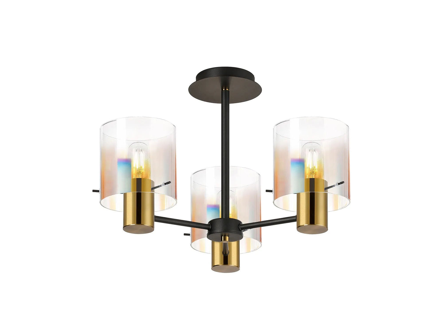 Chisholm 54cm Semi Flush Light, 3 x E27, Brass/Sand Black/Iridescent Fade Glass