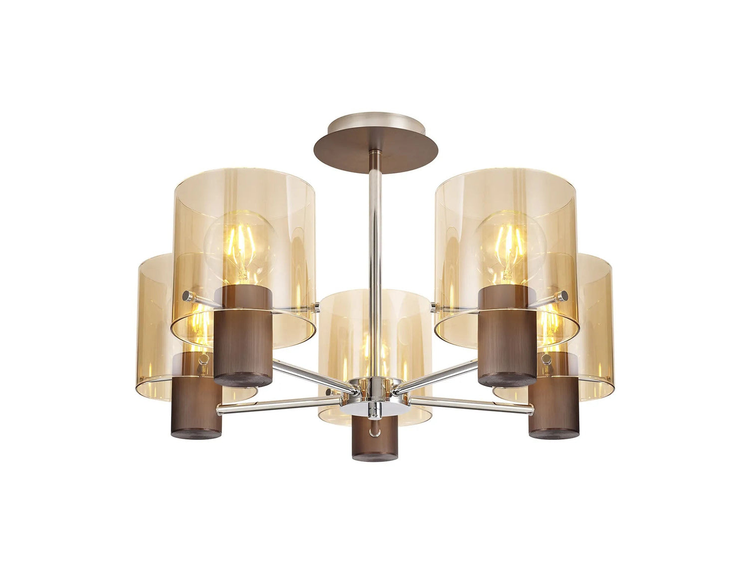 Chisholm Semi Flush Light, 5 x E27, Mocha/Amber Glass