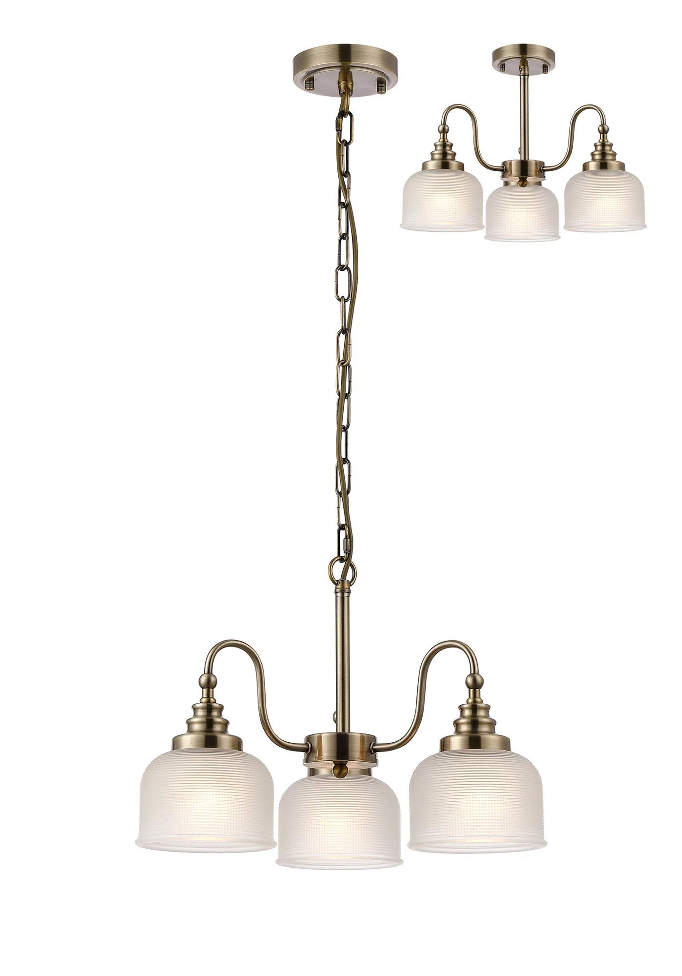 Gray Semi Flush/Pendant, 3 Light E27, Antique Brass/Frosted Glass is backordered and will ship as soon as it is back in stock.