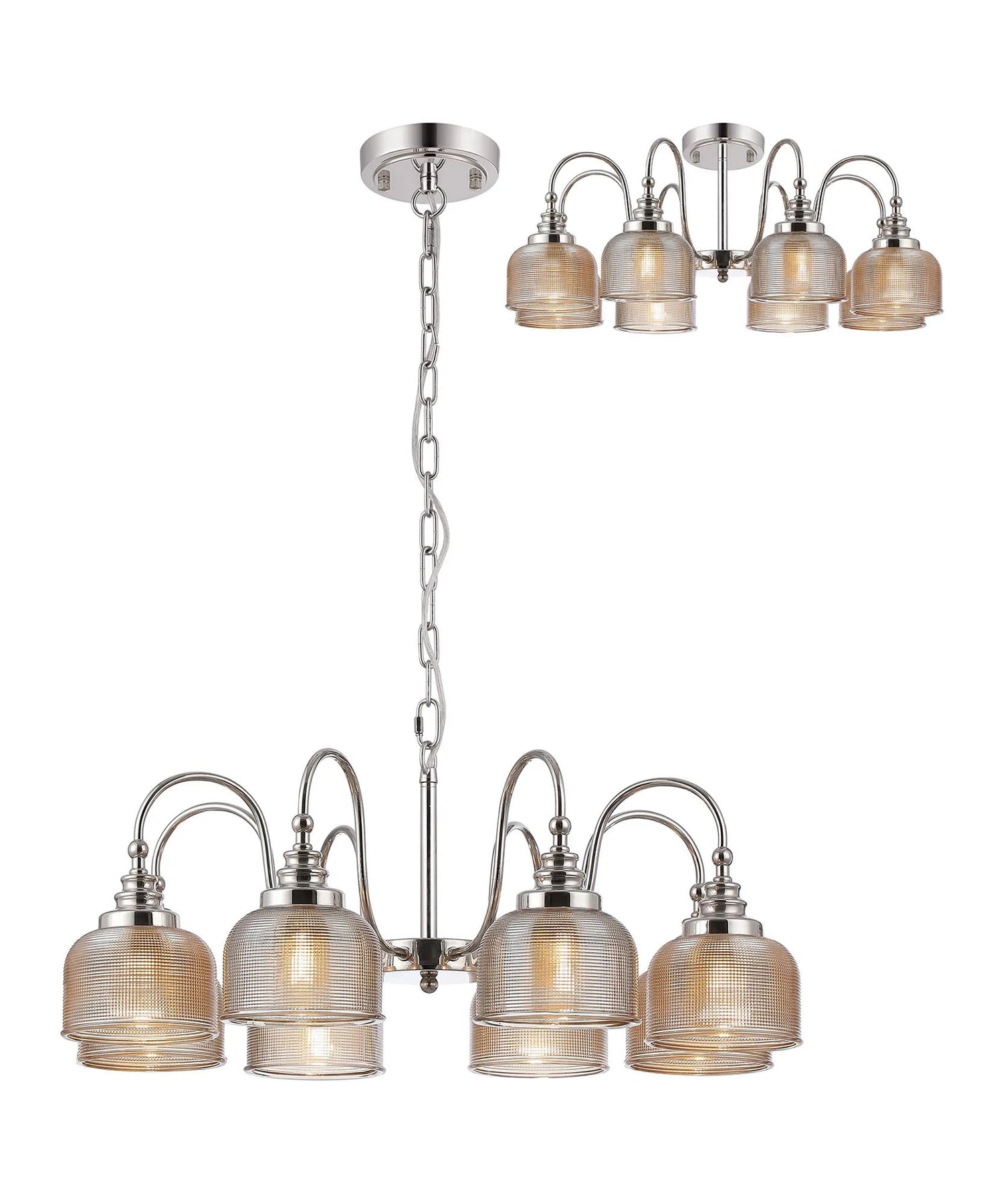 Gray Semi Flush/Pendant, 8 Light E27, Polished Nickel/Amber Glass