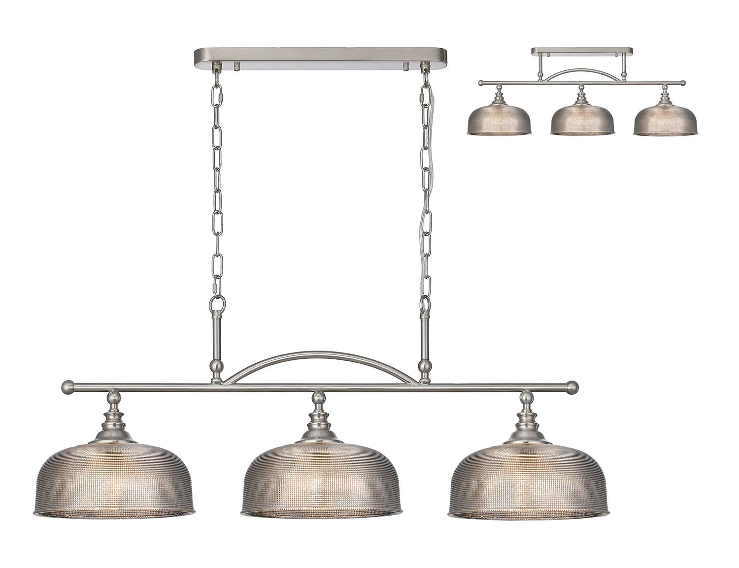 Gray Semi Flush/Pendant Bar, 3 Light Adjustable E27, Satin Nickel/Smoke Glass