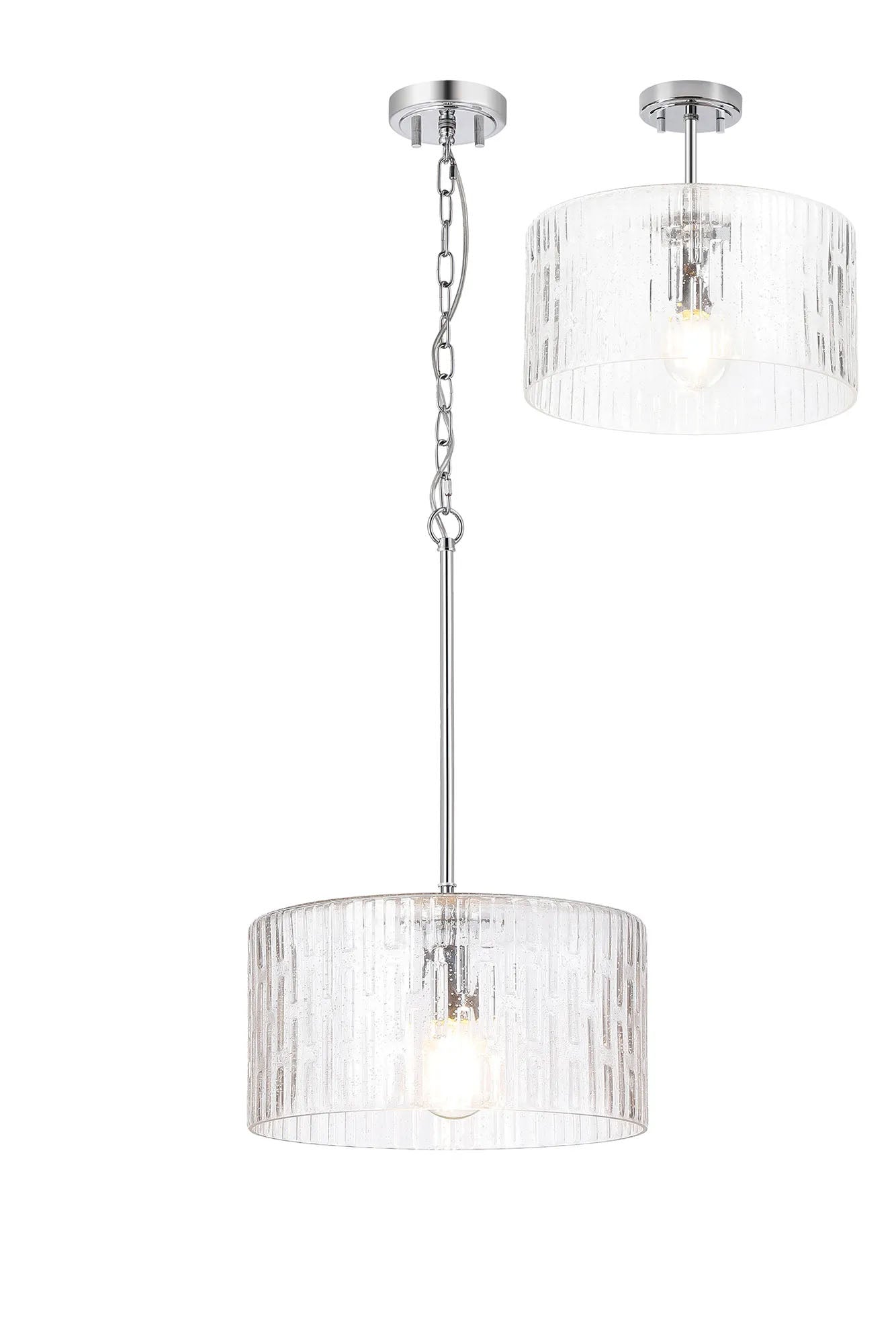 Hitchens Polished Chrome Pendant/Semi Flush/Semi Flush 1 x E27 With Drum Ribbed Glass (B)