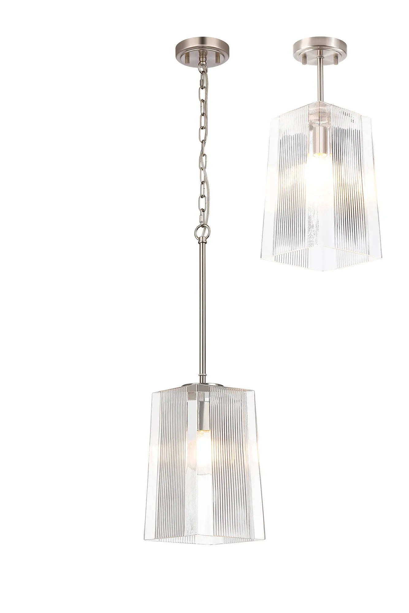 Hitchens Satin Nickel Pendant/Semi Flush/Semi Flush 1 x E27 With Square Ribbed Glass (C)