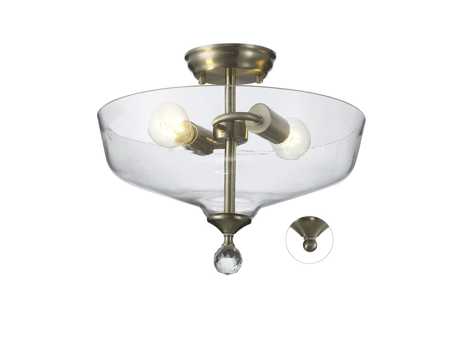 Holloway 2 Light Semi Flush Ceiling E27 With Flat Round 38cm Glass Shade Satin Nickel/Clear is backordered and will ship as soon as it is back in stock.