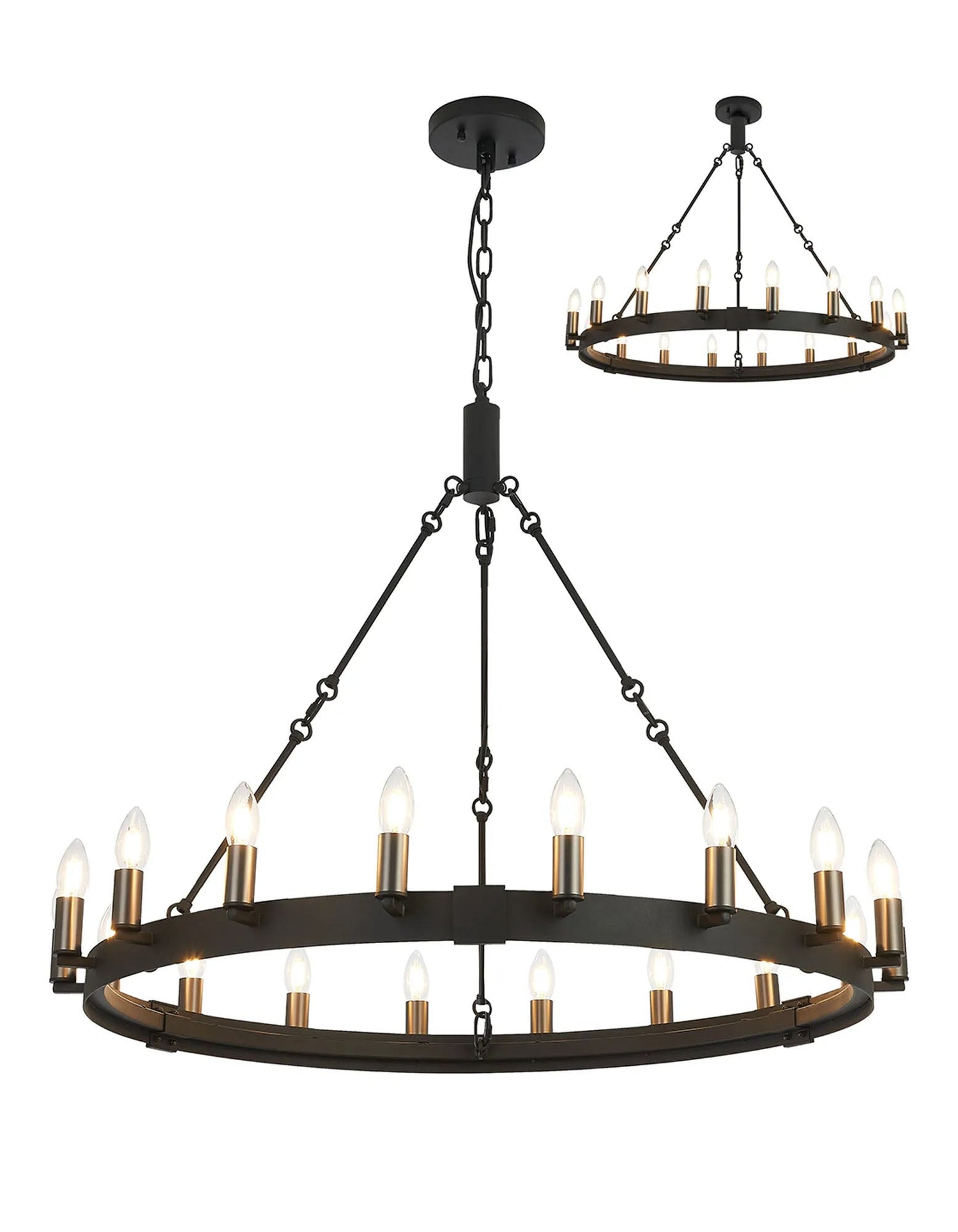Matete 97cm Semi Flush/Pendant, 18 Light E14, Satin Black/Gun Metal (ITEM REQUIRES CONSTRUCTION)