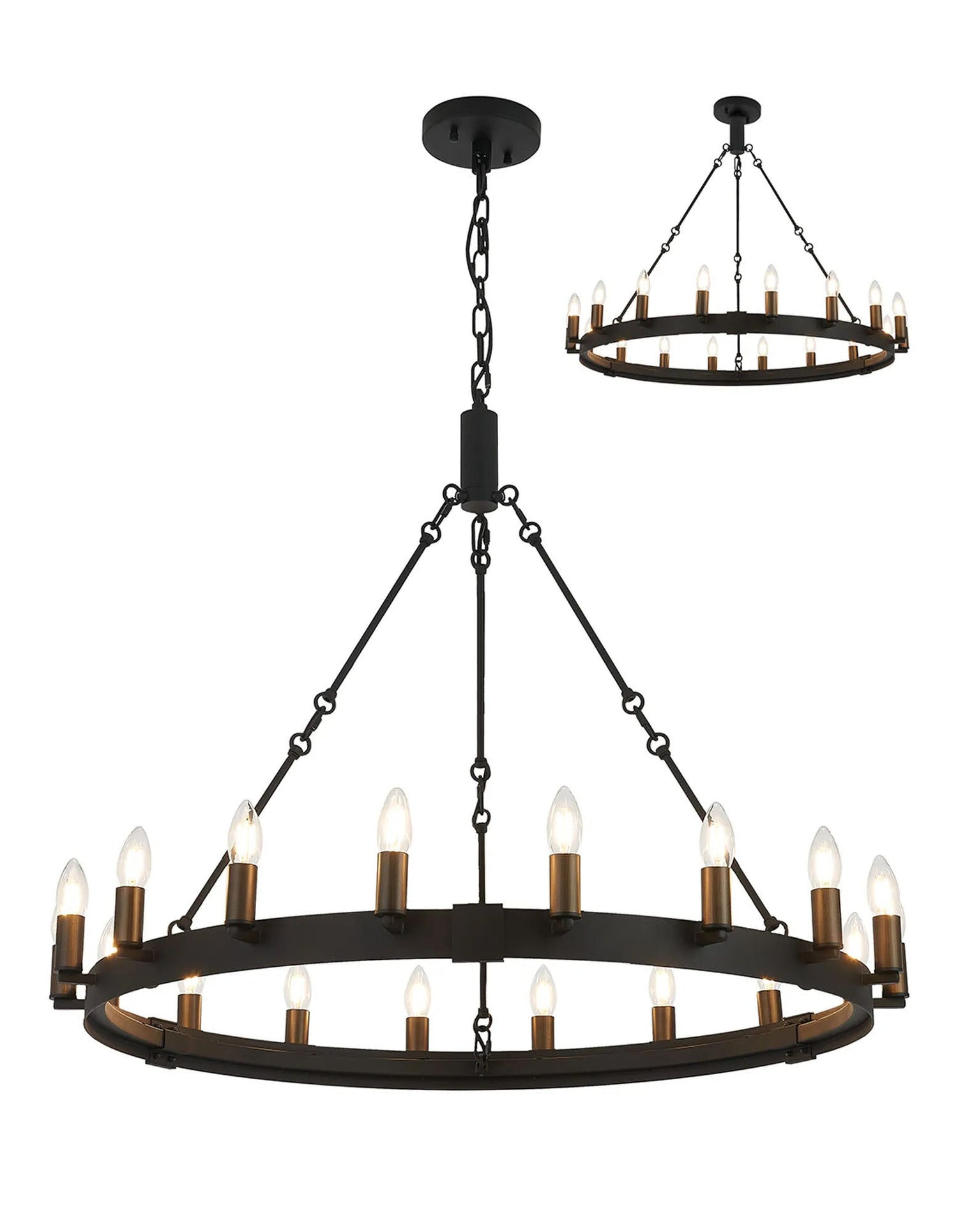 Matete 97cm Semi Flush/Pendant, 18 Light E14, Satin Black/Matt Bronze (ITEM REQUIRES CONSTRUCTION)