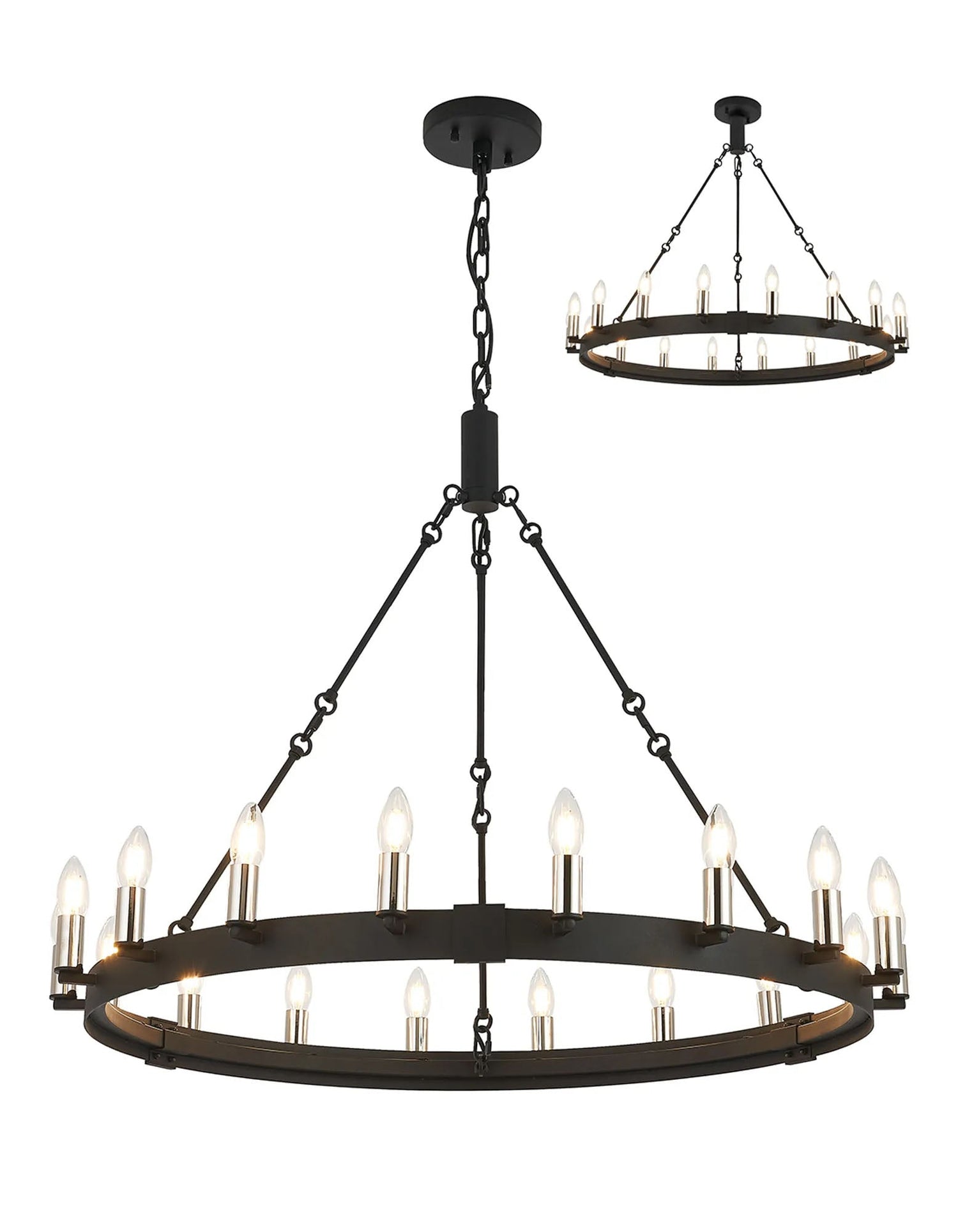 Matete 97cm Semi Flush/Pendant, 18 Light E14, Satin Black/Polished Nickel (ITEM REQUIRES CONSTRUCTION)
