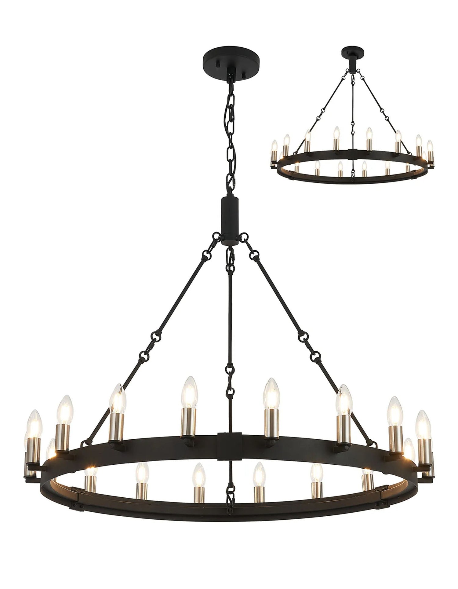 Matete 97cm Semi Flush/Pendant, 18 Light E14, Satin Black/Satin Nickel (ITEM REQUIRES CONSTRUCTION)