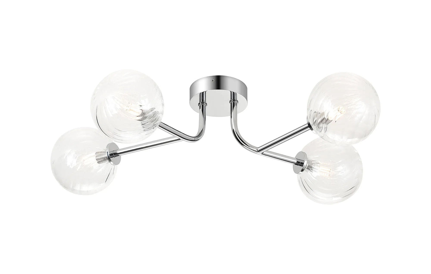 Whitley Linear Semi Flush Ceiling 4 Light IP44 Polished Chrome/Clear Swirl Round Glass