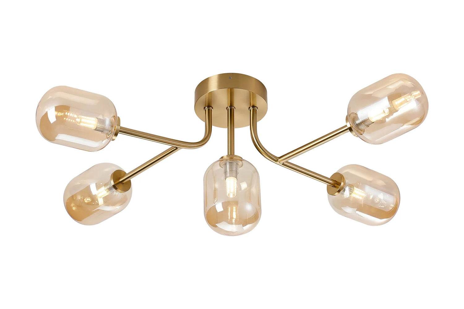 Whitley Linear Semi Flush Ceiling 5 Light IP44 Brass gold/Amber Smooth Tubular Glass