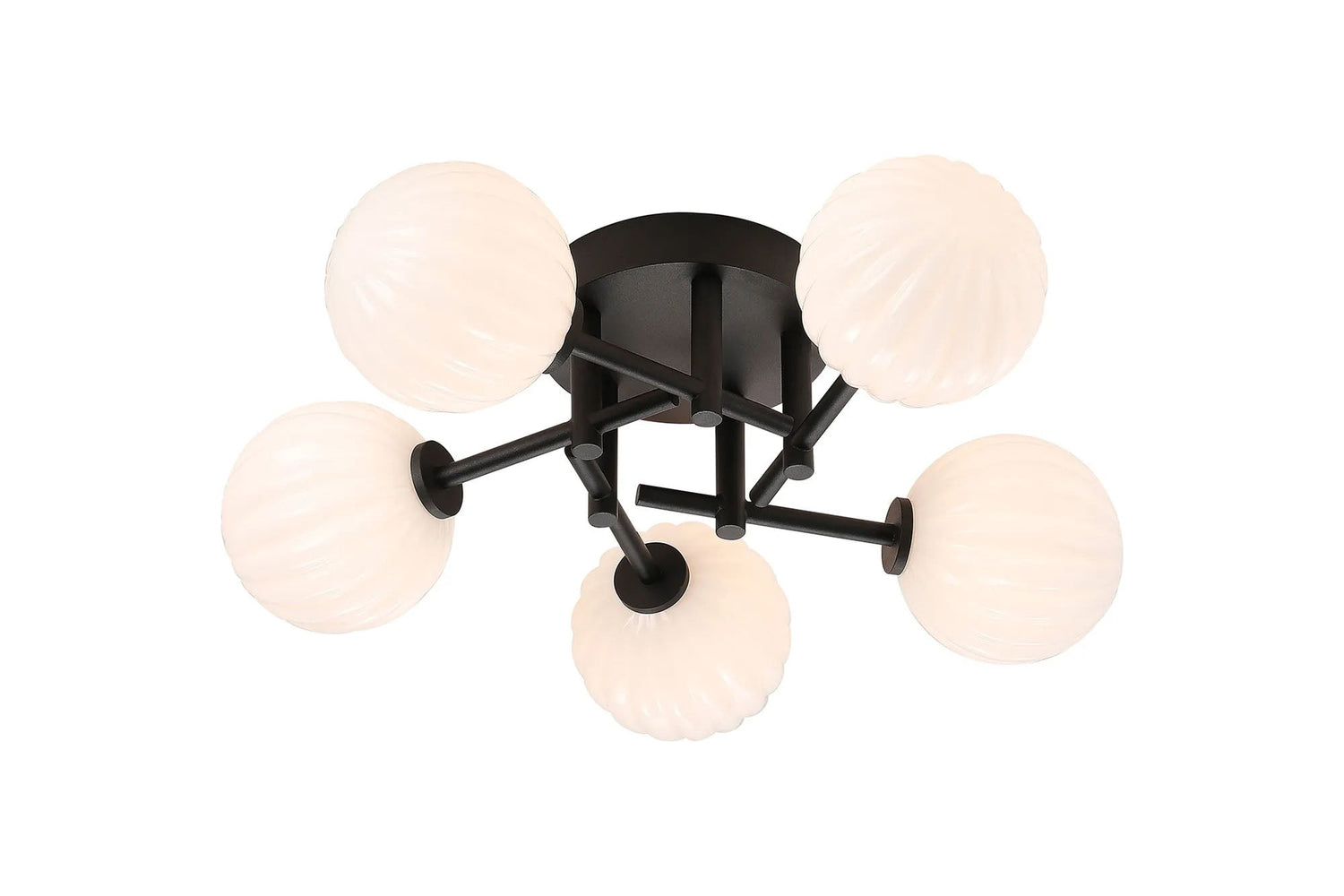 Whitley Round Semi Flush Ceiling 5 Light IP44 Satin Black/Opal Round Segment Glass