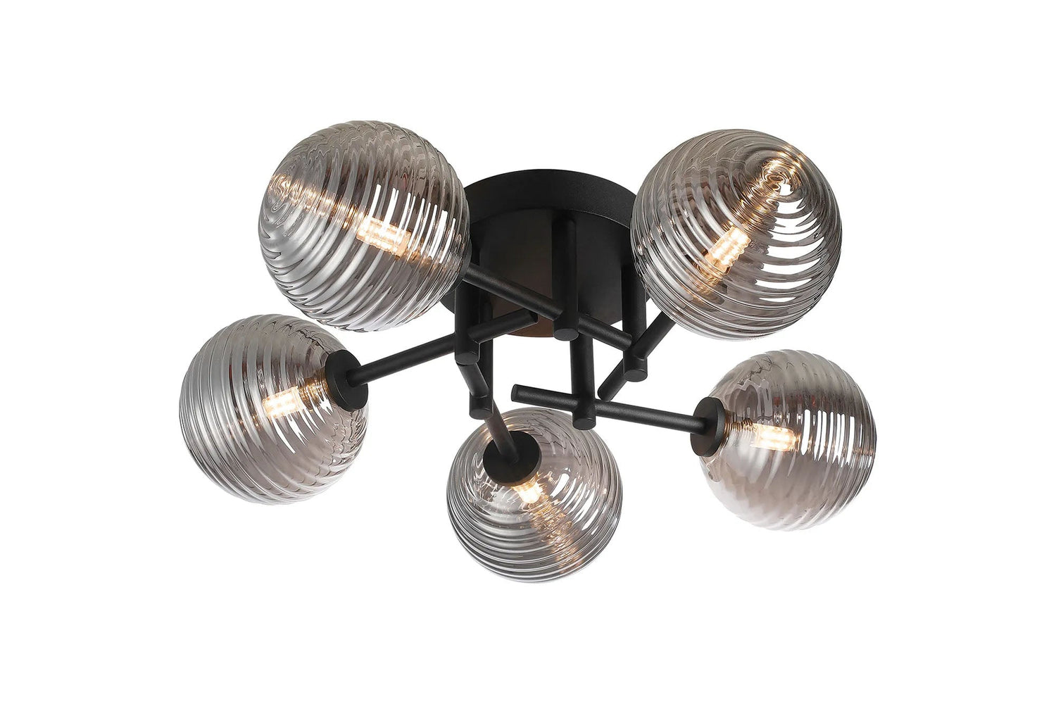Whitley Round Semi Flush Ceiling 5 Light IP44 Satin Black/Smoke Ribbed Round Glass