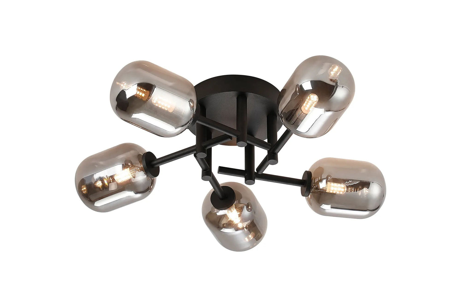 Whitley Round Semi Flush Ceiling 5 Light IP44 Satin Black/Smoke Smooth Tubular Glass
