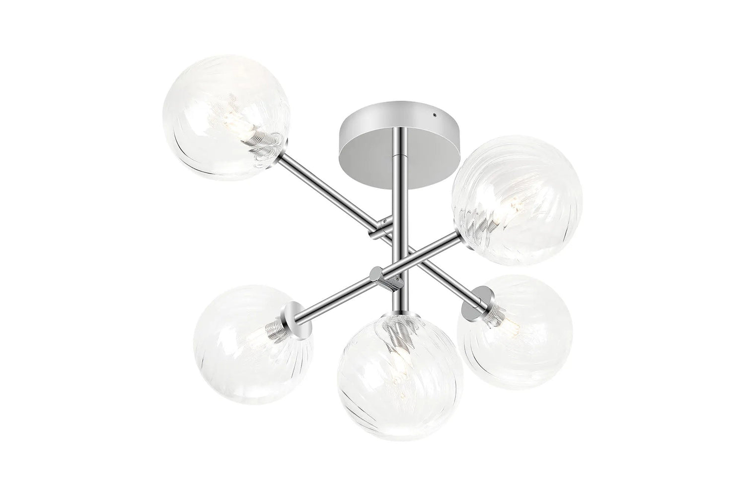 Whitley Semi Flush Ceiling 5 Light Tiered Adjustable Arms IP44 Polished Chrome/Clear Swirl Round Glass