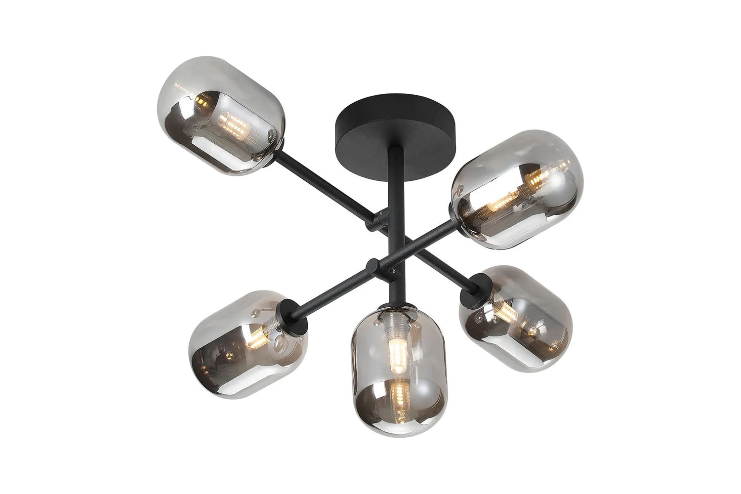 Whitley Semi Flush Ceiling 5 Light Tiered Adjustable Arms IP44 Polished Chrome/Smoke Smooth Tubular Glass