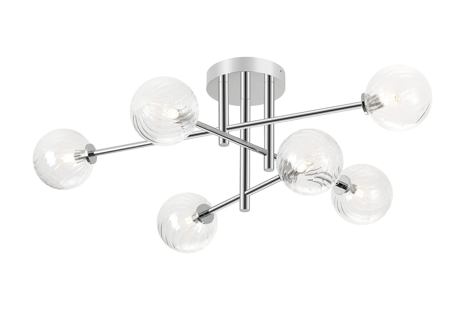 Whitley Semi Flush Ceiling 6 Light Tiered IP44 Polished Chrome/Clear Swirl Round Glass
