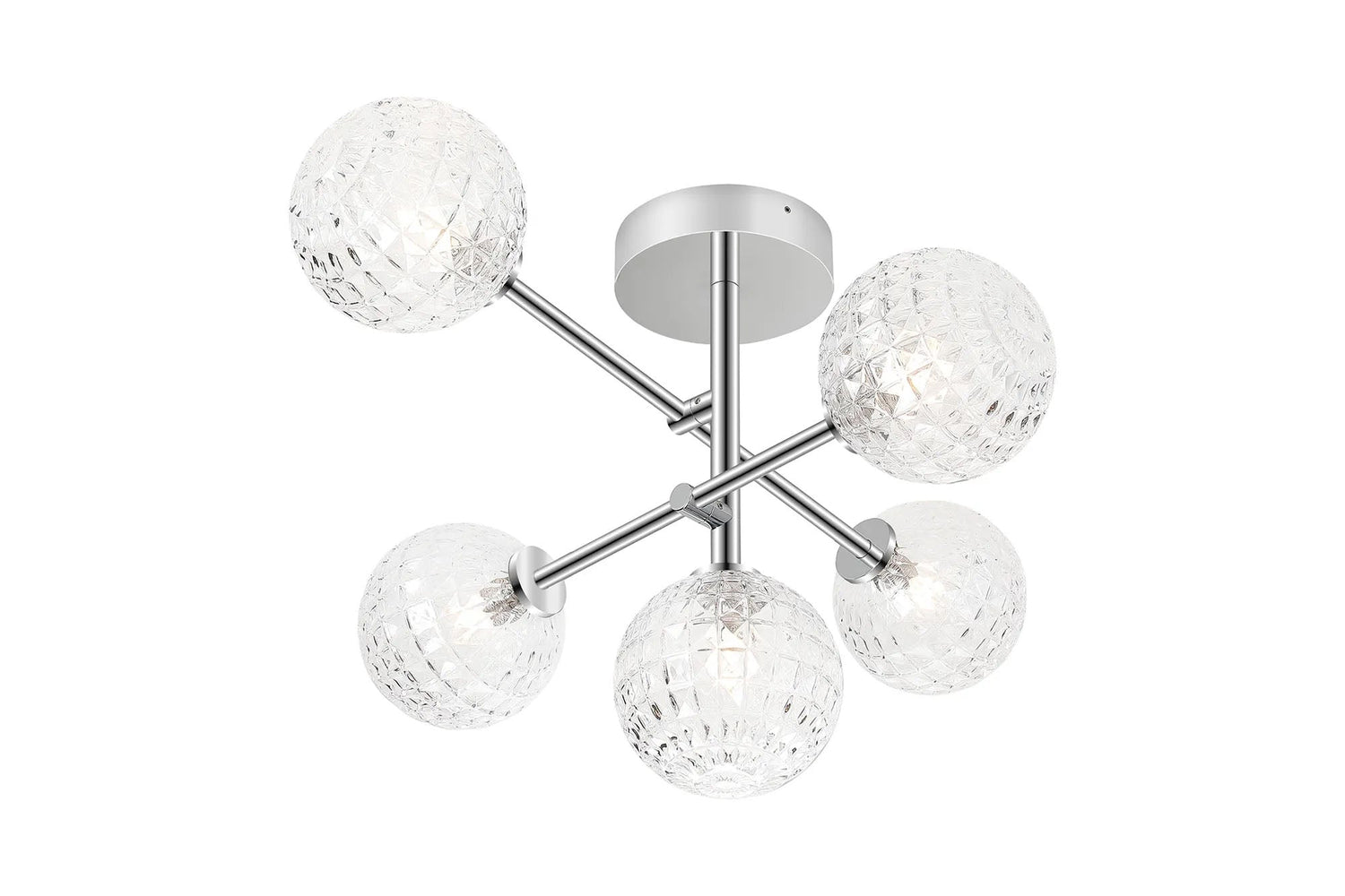 Whitley Semi Flush Ceiling Tiered Adjustable Arms, 5 Light G9, IP44, Polished Chrome/Clear Cross Pattern Round Glass