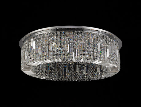 £98.33 + VAT (£118.00)Unit price /UnavailableIn stock (24 units)Devine 85cm Round Flush Chandelier, 12 Light E14, Polished Chrome/Crystal Item Weight: 21kg