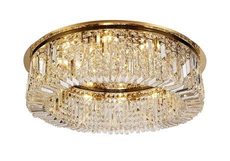 £135.83 + VAT (£163.00)Unit price /Unavailable Devine 85cm Round Flush Chandelier, 12 Light E14, Gold/Crystal Item Weight: 21kg