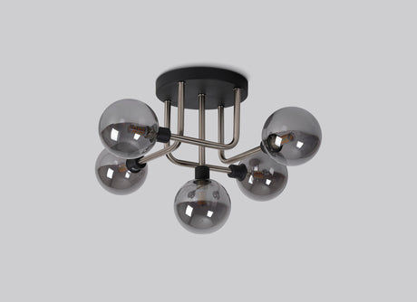 £276.67 + VAT (£332.00)Unit price /UnavailableIn stock (24 units)Gayle Flush Ceiling, 5 Light G9, Graphite / Satin Nickel / Smoke Glass