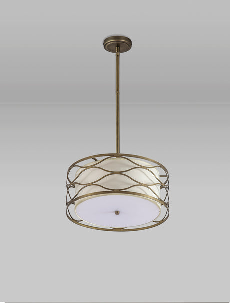 £308.33 + VAT (£370.00)Unit price /UnavailableIn stock (29 units)Hinnegan Pendant / Convertible To Semi Flush 3 Light E14 Aged Gold / Cream Fabric Shade