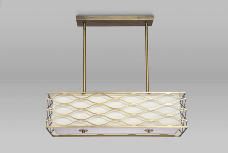 £164.40 + VAT (£197.28)Unit price /UnavailableIn stock (52 units)Hinnegan Rectangle Pendant / Convertible To Semi Flush 5 Light E14 Aged Gold / Cream Fabric Shade