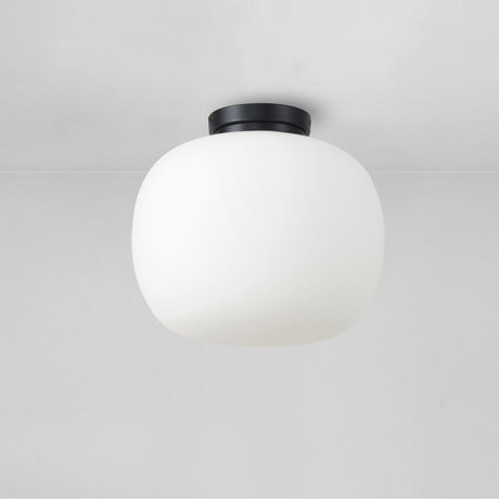 £50.83 + VAT (£61.00)Unit price /UnavailableLow stock (14 units)Cunnington Medium Oval Ball Flush Fitting 1 Light E27 Matt Black Base With Frosted White Glass Globe