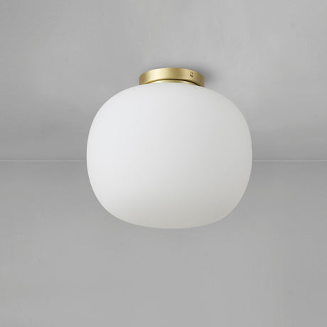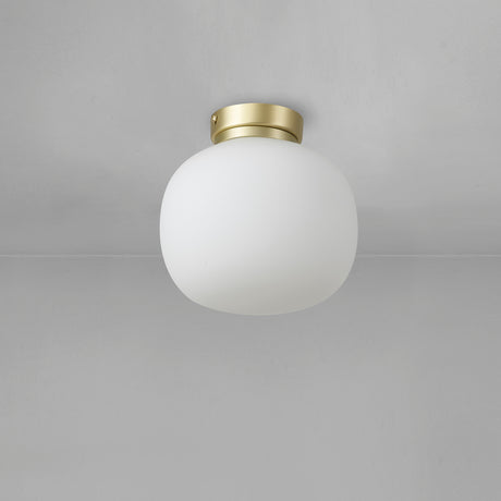 £34.17 + VAT (£41.00)Unit price /UnavailableVery low stock (2 units)Cunnington Medium Oval Ball Flush Fitting 1 Light E27 Satin Gold Base With Frosted White Glass Globe
