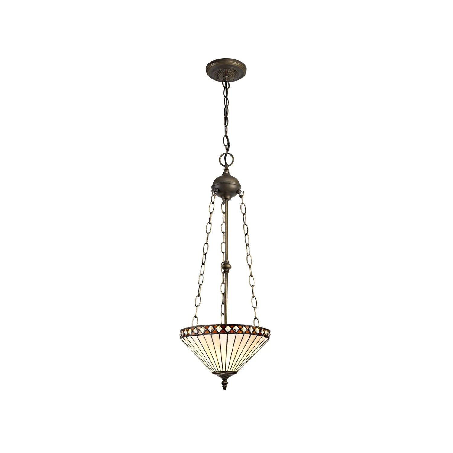 Wearne 3 Light Uplighter Pendant E27 With 30cm Tiffany Shade, Amber/Cream/Crystal/Aged Antique Brass