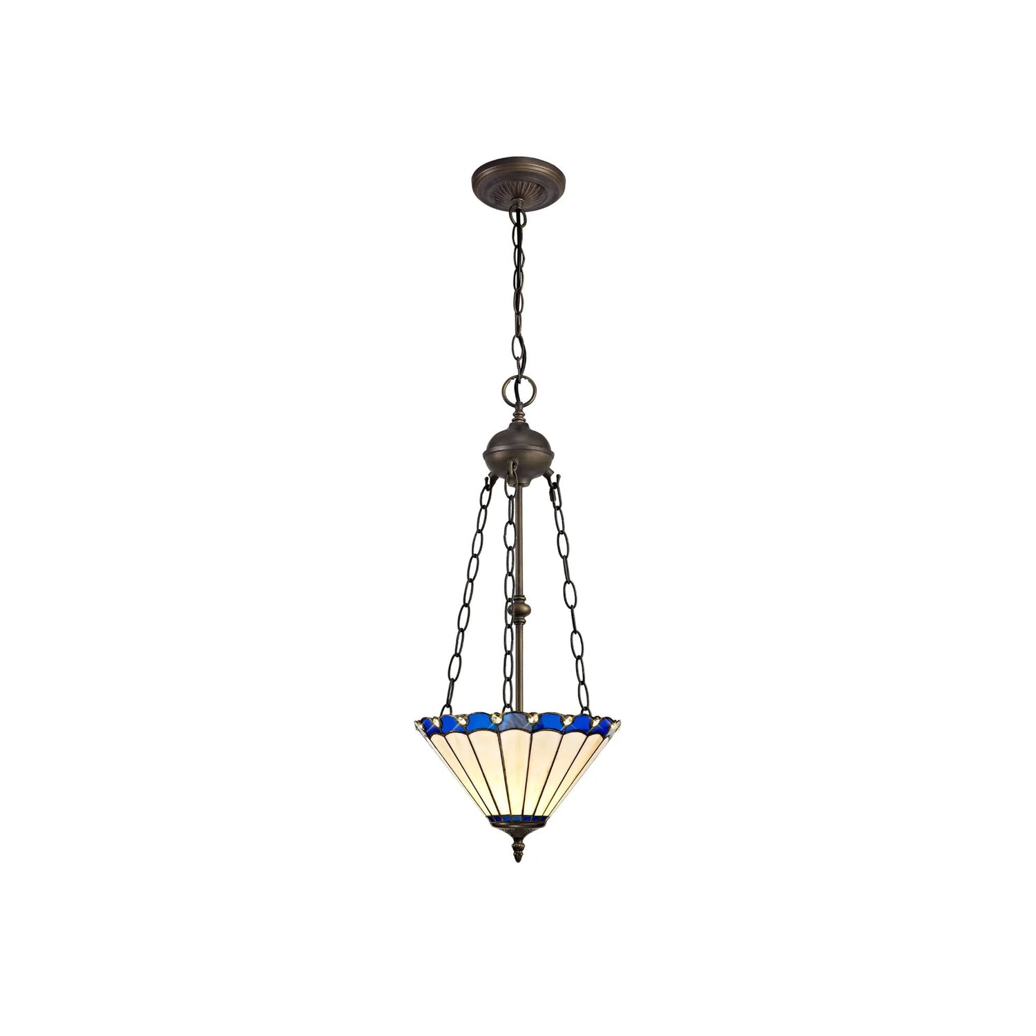 Williams 2 Light Uplighter Pendant E27 With 30cm Tiffany Shade, Blue/Cream/Crystal/Aged Antique Brass