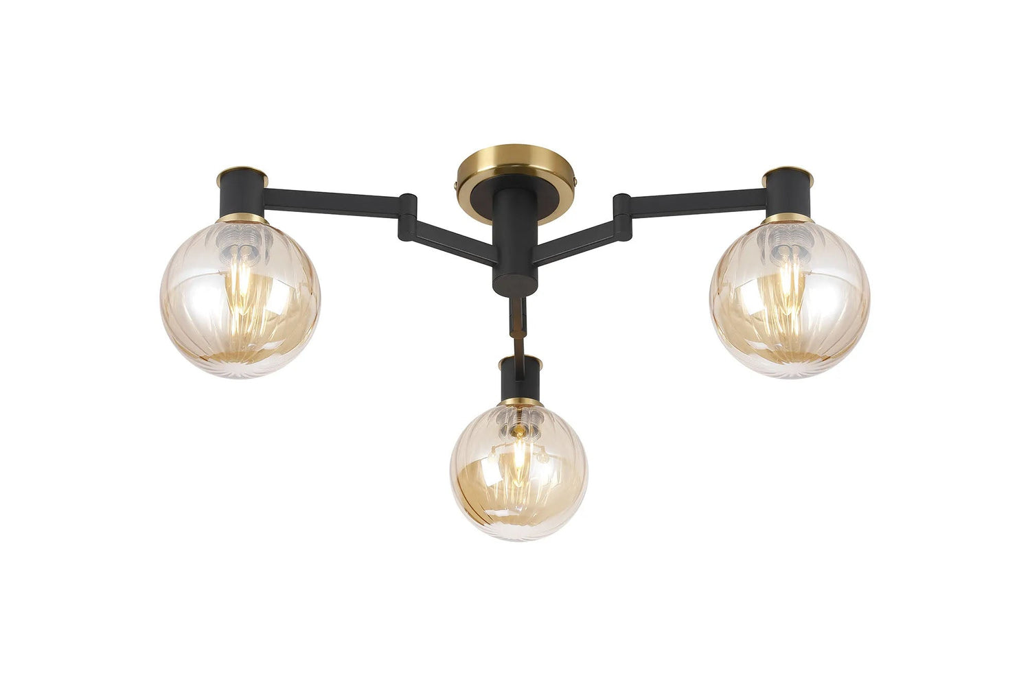 Adamson Swing Arm Flush Ceiling 3 x E14 Brass/Satin Black/Amber Plated Round Segment Glass