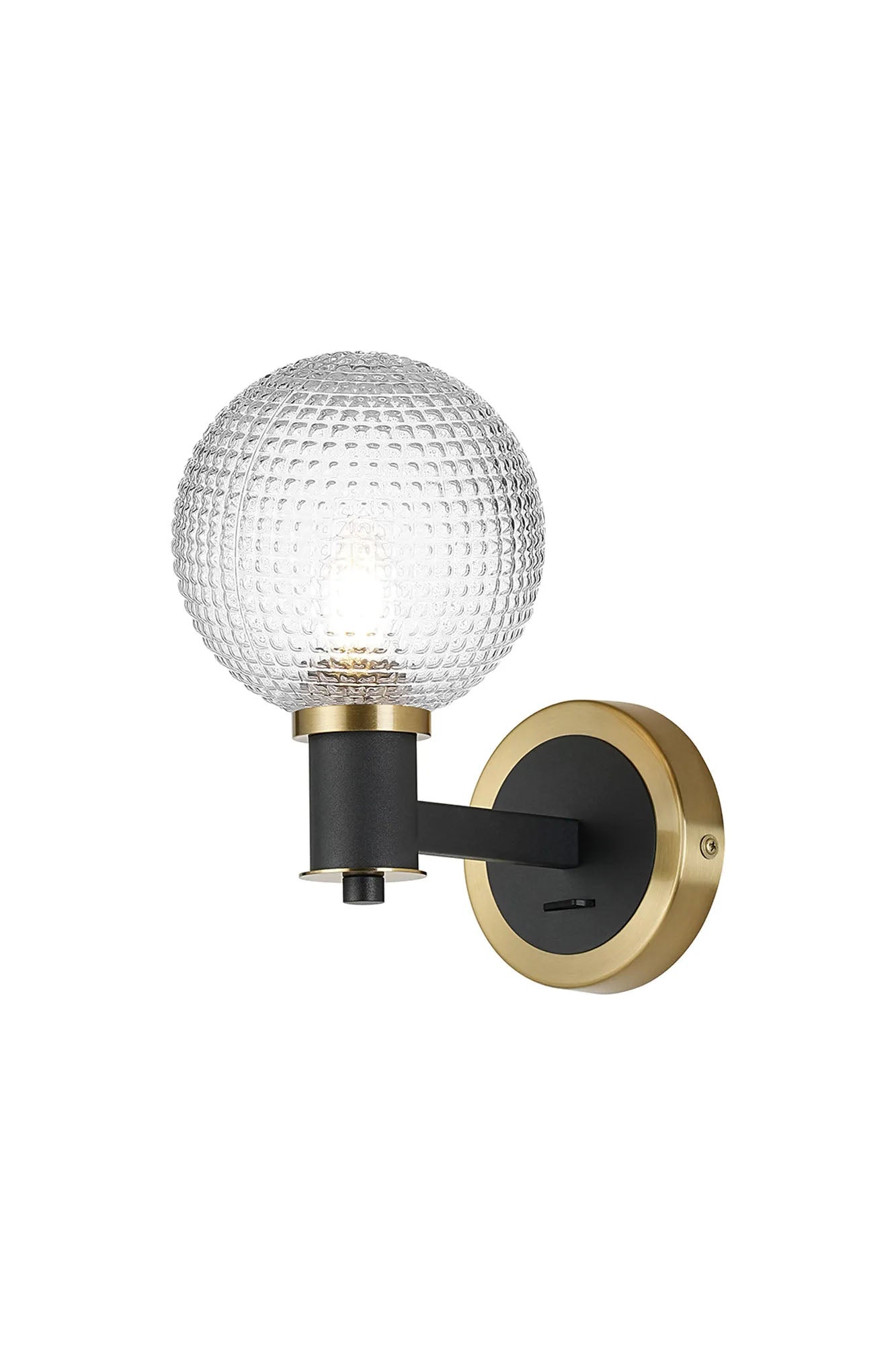 Adamson Wall x 1 x E14 Brass/Satin Black/Clear Round Textured Diamond Pattern Glass