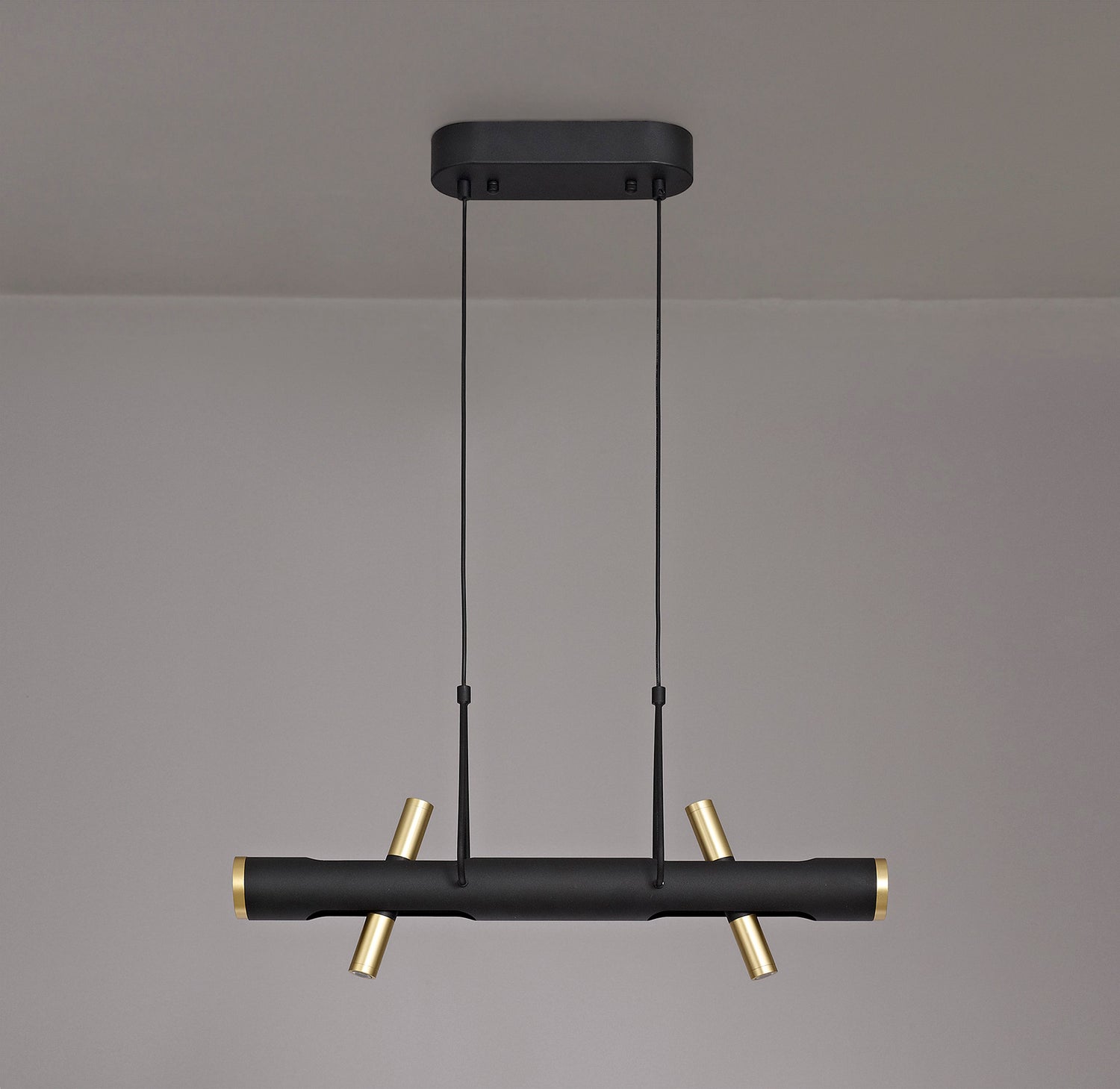 Almond Linear Pendant , 4 x 2W LED, 3000K, 1120lm, Sand Black, Gold, 3yrs Warranty