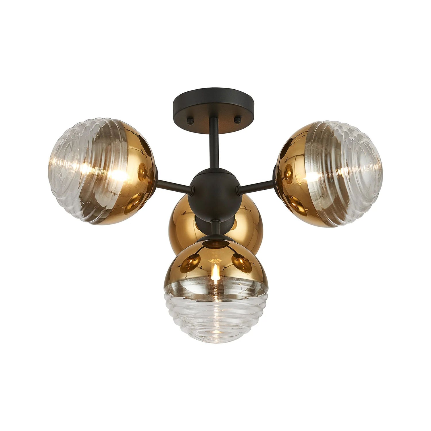 Armfield 51cm Semi-Flush Multi Arm Ceiling Light, 4 x G9, Satin Black/Gold/Clear Two-Tone Round Spiral Glass (A)