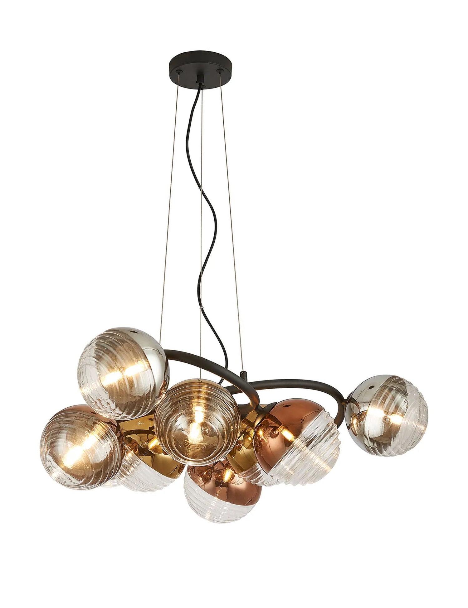 Armfield 88cm Twisted Pendant, 9 x G9, Satin Black/Chrome/Copper/Gold/Clear Two-Tone Round Spiral Glass (A)