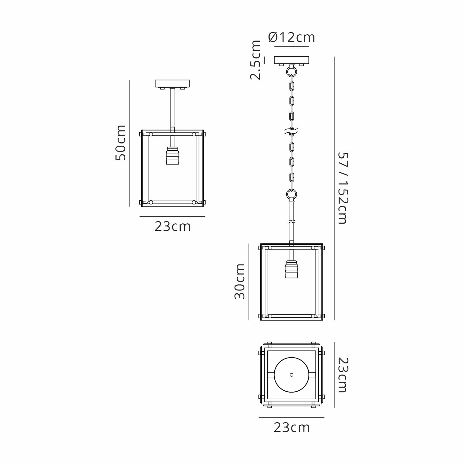 Bolton is a contemporary range of square glass pendants with complementing flush and semi flush fixture. The intricate design details of this range see the matt black colour finish accentuated by the polished chrome components. This added attractive, contrasting detail applies a modern twist to an otherwise traditional concept; suitable for a wide range of settings. The open spaces between the framework are filled with high quality clear glass panes to further reflect the light from the E27 lamp holders.